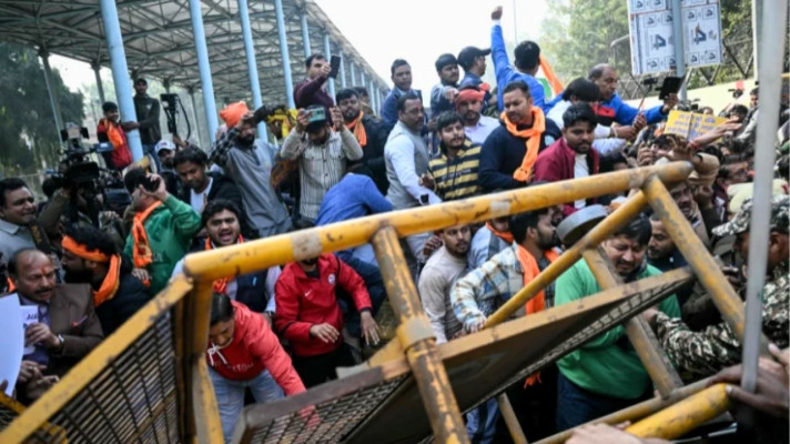 প্রতিবেদনে বলা হয়, ‘বাংলাদেশে সংখ্যালঘু নির্যাতন’ এবং ময়মনসিংহে দিপু চন্দ্র দাস নামে এক হিন্দু যুবককে পিটিয়ে হত্যার প্রতিবাদে এই বিক্ষোভ শুরু হয়। সময়ের সঙ্গে সঙ্গে পরিস্থিতি উত্তপ্ত হয়ে ওঠে এবং বিক্ষোভকারীরা ব্যারিকেড ভাঙার চেষ্টা চালায়।